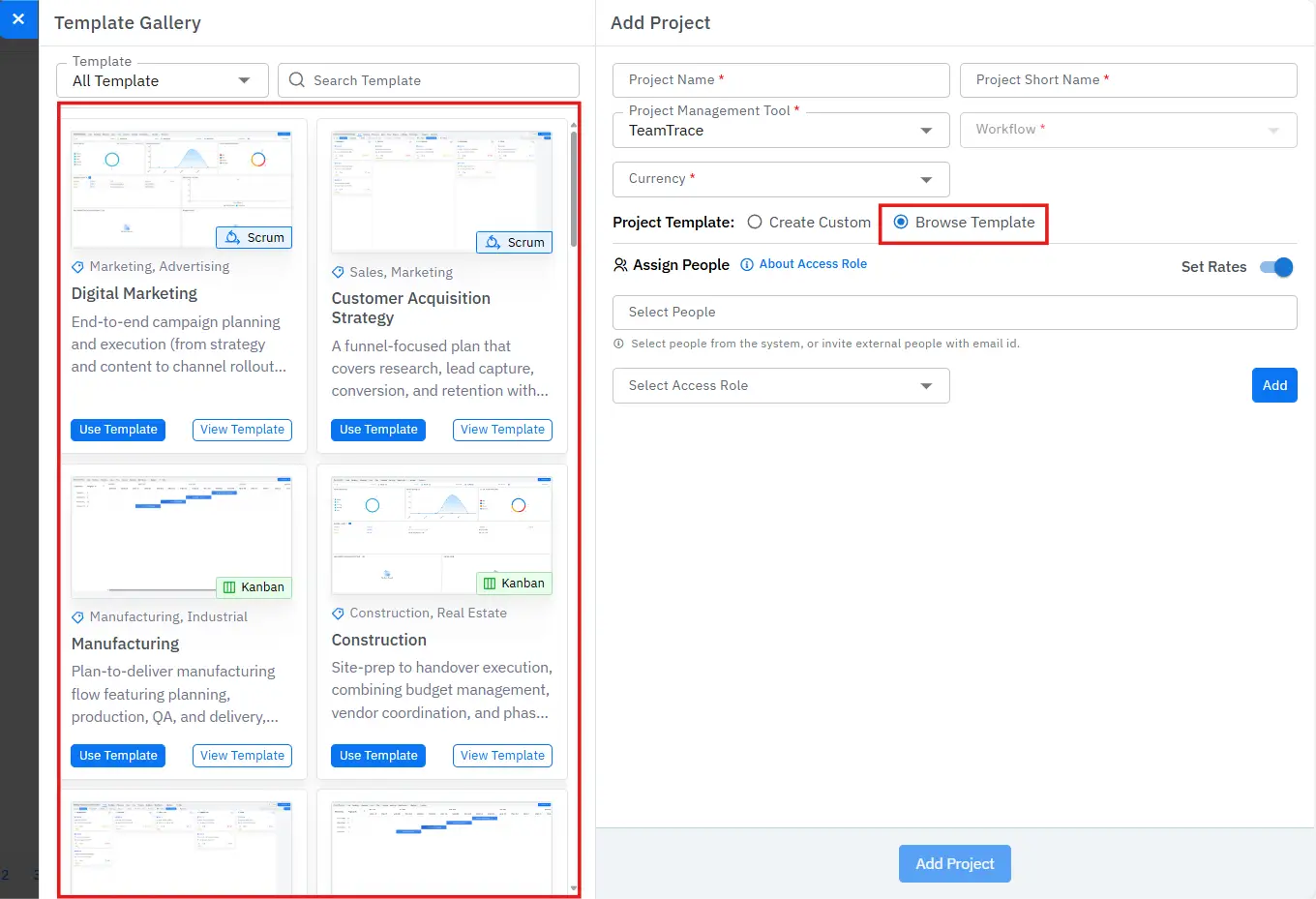 Project Templates to help teams set up uniform workflows in seconds.