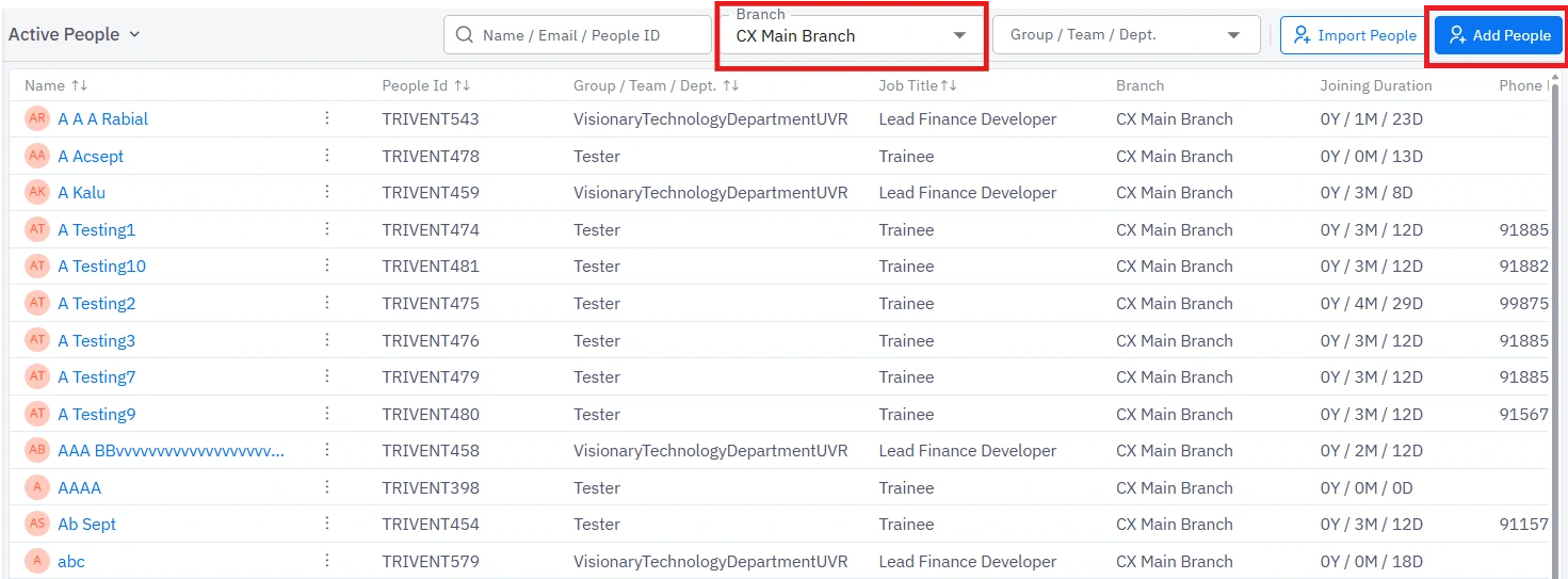 You can now filter employees branch-wise using the Branch filter. You can now assign an employee to a branch when adding them to the platform.