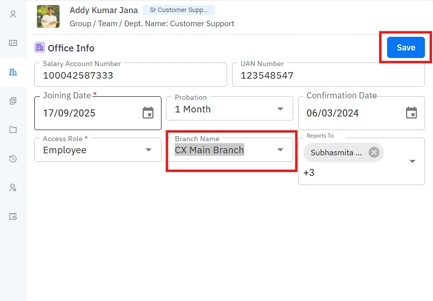 You can also change an employee’s existing branch to another one whenever required.