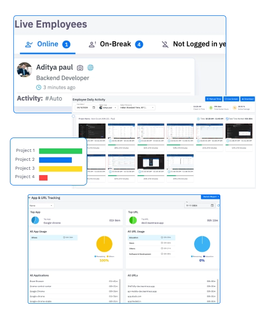 Obtain a comprehensive view of employee actions using our advanced employee monitoring solution that helps you stay aware of how each and every hour is spent during the working hours.